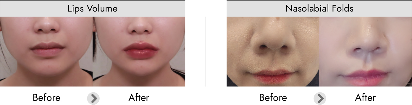 Môi: Tạo độ căng mọng, xóa tan các nếp nhăn môi.