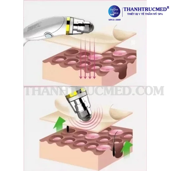 Kích thích sinh học: Nhiệt lượng này làm co tức thì các sợi Collagen cũ bị chùng nhão, đồng thời kích hoạt quá trình tăng sinh Collagen và Elastin mới.